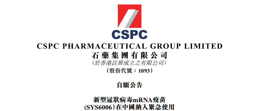 今日(3月22日),石药集团发布公告称, 经中华人民共和国国家卫生健康委员会提出建议,国家药品监督管理局组织论证同意,本集团的新型冠状病毒mRNA疫苗(SYS6006) 在中国纳入紧急使用,用于预防新型冠状病毒(SARS-CoV-2)感染引起的疾病(COVID-19)。该产品是中国首个自主研发,获得紧急授权使用的mRNA疫苗产品。